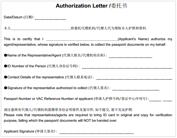 葡萄牙留學(xué)簽證委托書樣張